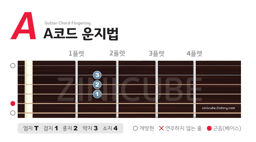 오늘은 기타 코드중 A코드 입니다. 다음의 순서로 이미지를 올렸으니 참고하세요.